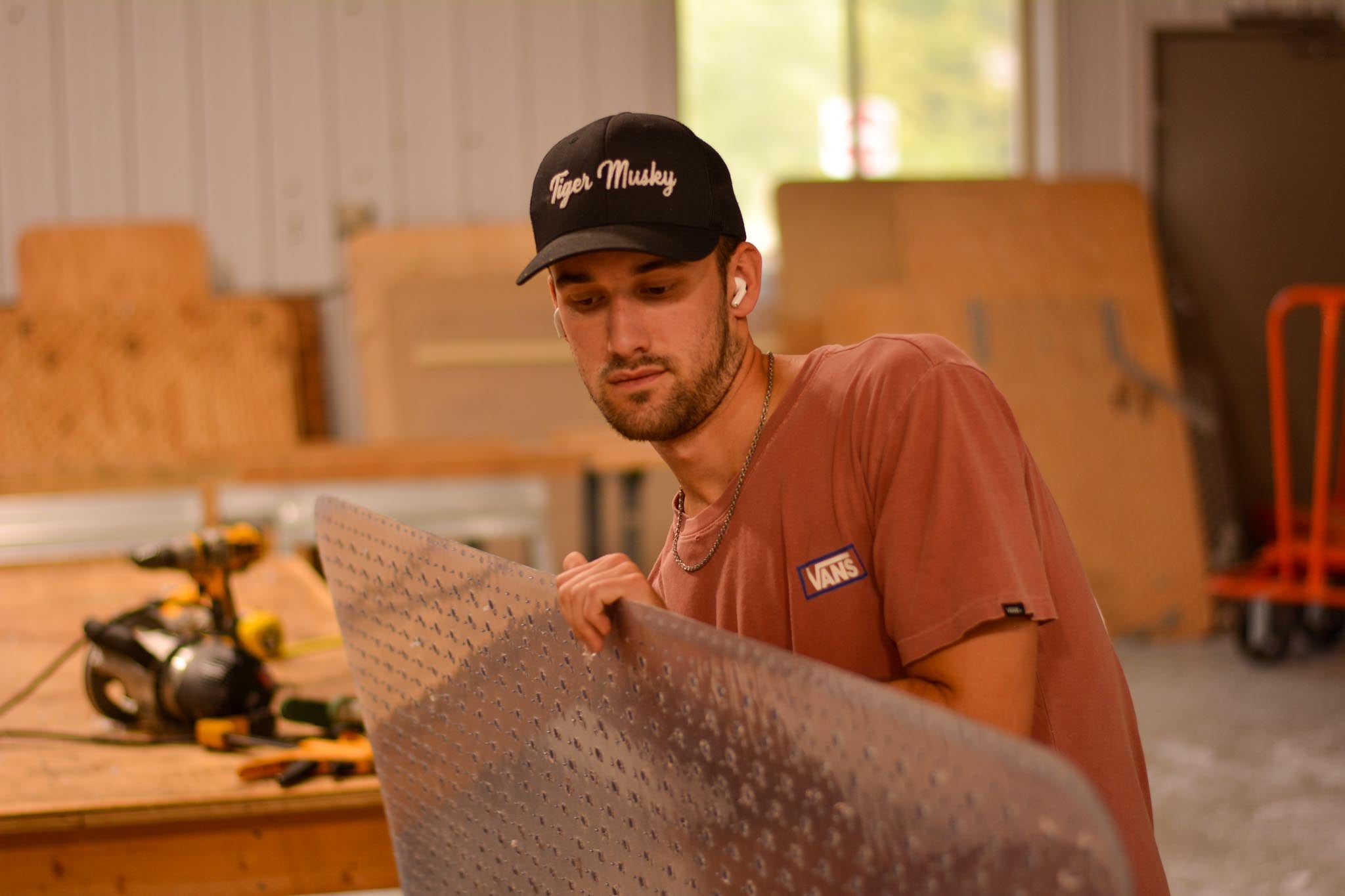 Here's the owners behind all the magic. Hunter on the right and Carter on the left. We took over Bison Mat from our grandpa in 2020. Kinda a weird time to purchase a business, right? To some people maybe but we had a plan. We saw an opportunity to help people transition from the traditional office to their home office.Â